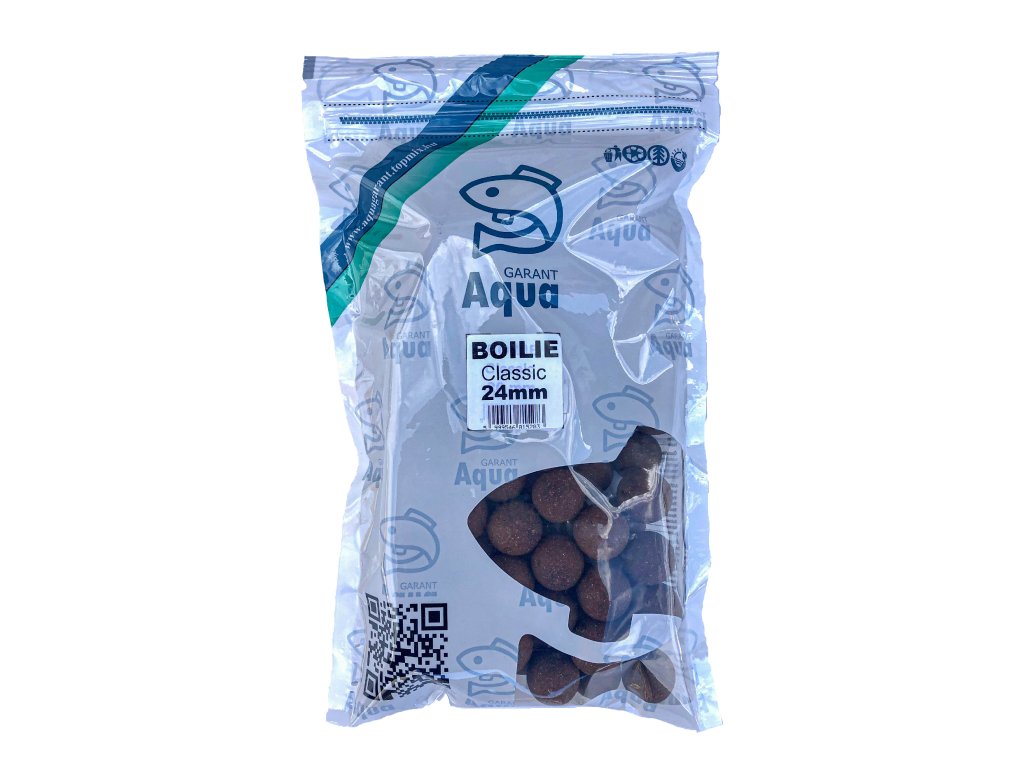 Aqua Boilie 20 és 24 mm Különleges eljárással készült AQUA GARANT pelletek őrleményéből. Nyitott, oldódó bojli, melynek fehérje tartalma kimagasló 37%, ehhez kiegyensúlyozott fehérje és szénhidrát arány párosul. Különleges ponty csemege, melynek megalkotásánál a legfőbb szempont (csalogató ereje mellett) az emészthetőség, a halvédelem, így nélkülöztünk minden mesterséges aromát, tartósítószert és adalékot. Oldódási ideje 4-6 óra, de már egy perc után is látványos szemcse leválást mutat, az így kioldódó alapanyagok gyorsan fejtik ki csalogató hatásukat. A termék aromát nem tartalmaz!