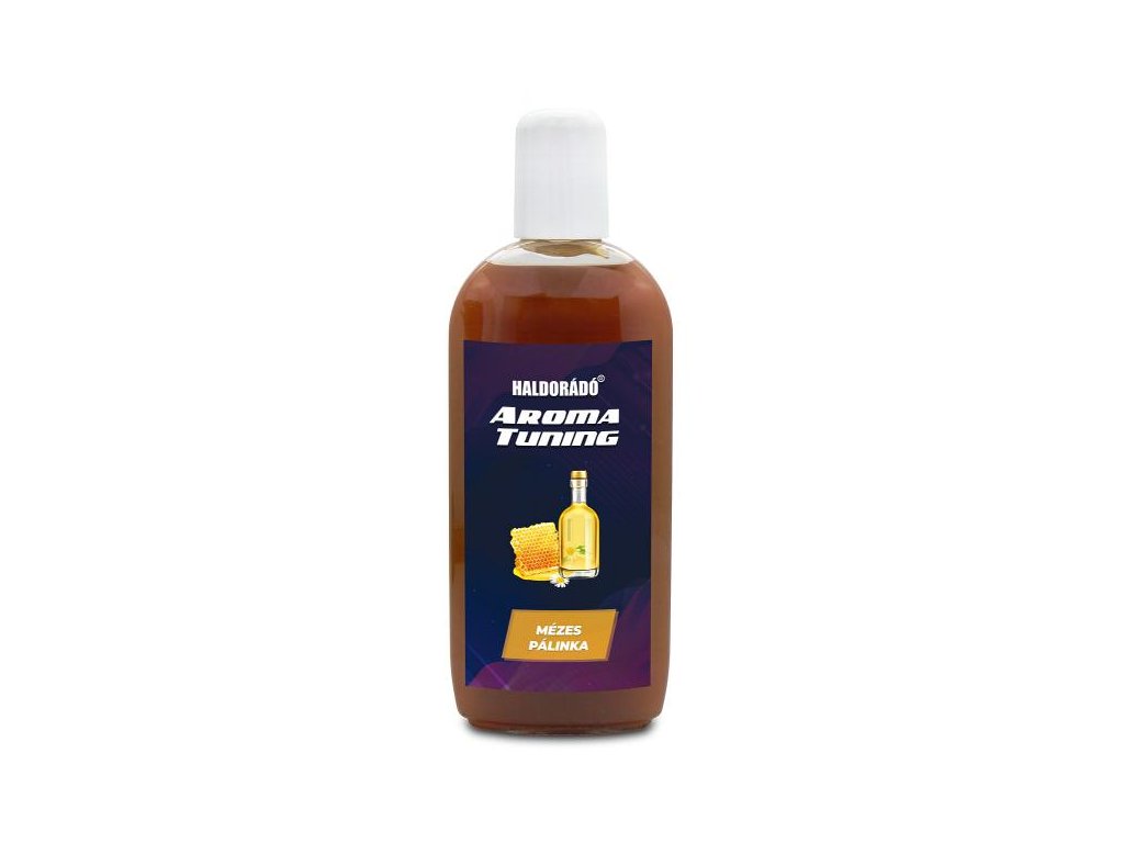 Haldorádó Aroma Tuning Mézes Pálinka sötétbarna színű, sűrű, méz és barackpálinka keverékével ízesített aroma. Ez az az ízvilág, amelyet az eddigi vásárlói visszajelzések alapján a Haldorádó pelletekből és kukoricákból a legszívesebben vásároltak a horgászok. Az emberi orr számára is finomnak, kellemesnek tűnik, de jobban beleszagolva érződik csak ki, hogy mennyire tömény. A különleges aroma a Haldorádó Red Tuning pelletek közül szintén a Mézes Pálinka, valamint az azonos nevű üveges kukoricával harmonizáló ízvilágú.