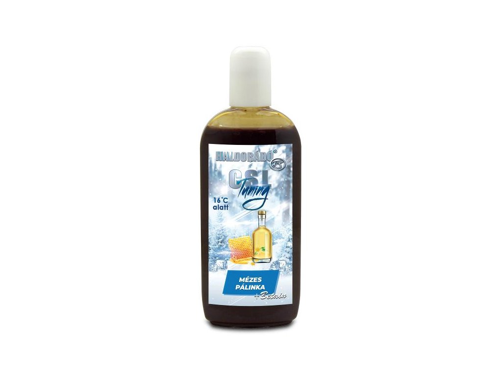 A CSL Tuning aromacsalád előemésztett fehérjét, jól oldódó tápanyagokat, természetes cukrot, szabad aminosavakat, vitaminokat, ásványi sókat és étvágyfokozó betaint is tartalmaz. Színe sötétbarna és négy különböző ízesítéssel kerül forgalomba. Ezek a Vörös Démon, Mézes Pálinka, Tenger Kincse, és a Fagyos Ponty. Mikor melyiket célszerű használni? 1. A Vörös Démon olyan alap íz, amellyel nem lehet hibázni. A tiszta, friss, érett szamóca átható illata bármelyik édes keverékkel nagyon jól harmonizál, tovább erősíti annak hatását. 2. A hallisztes keverékek erejét drasztikusan növeli a büdös Tenger Kincse aroma. 3. A különleges, nem megszokott ízeket és aromákat kereső, kísérletező kedvű horgászok igazi fegyvere a Mézes Pálinkás CSL Tuning aroma, vagy a Fagyos Ponty fantázianevű aroma, amely édes és büdös (hallisztes) keverékekhez egyaránt ajánlott. Használati útmutató és mestertippek 1. Ez az aroma kifejezetten a hideg, lehűlt (őszi, téli) és lassan felmelegedő tavaszi vizekben hatásos, amíg a víz hőfoka nem éri 16 Celsius-fokot. 2. Egy flakon (250 ml) aroma 5 kg etetőanyag megízesítésére és aromásítására alkalmas. Az aromát a száraz etetőanyagra, a kukoricapogácsára vagy a bekeveréshez szükséges vízhez is önthetjük. 3. Kiválóan használható pelletek, széttört és főtt (áztatott) magvak aromásítására is. 4. Mivel a PVA termékeket nem oldja, kifejezetten ajánlott kisméretű, PVA hálóba csomagolt etetőanyag-rudacskák és pelletek ízesítéséhez. 5. Készíthetünk vele túlaromásított, etetőkosárba szánt keveréket is. Ekkor kis mennyiségben is meghökkentő lesz a csalogatóhatása.