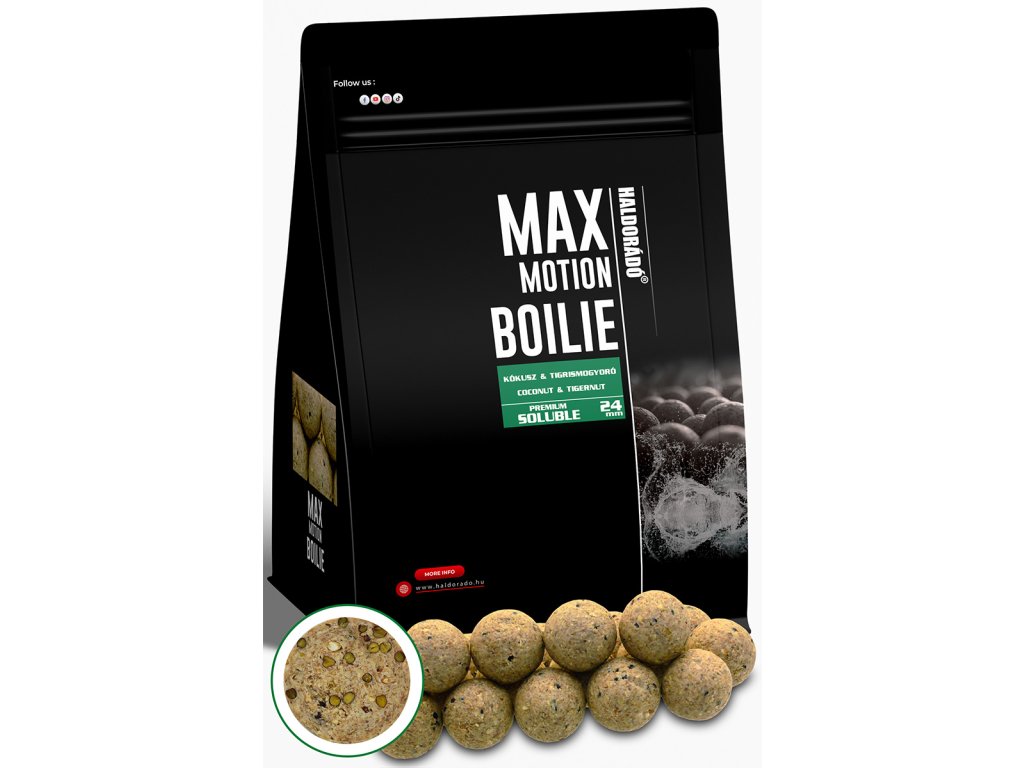 Haldorádó MAX MOTION Boilie Premium Soluble 24 mm - Kókusz & Tigrismogyoró