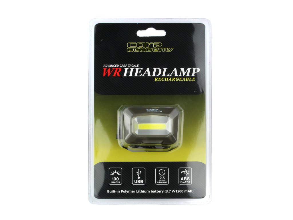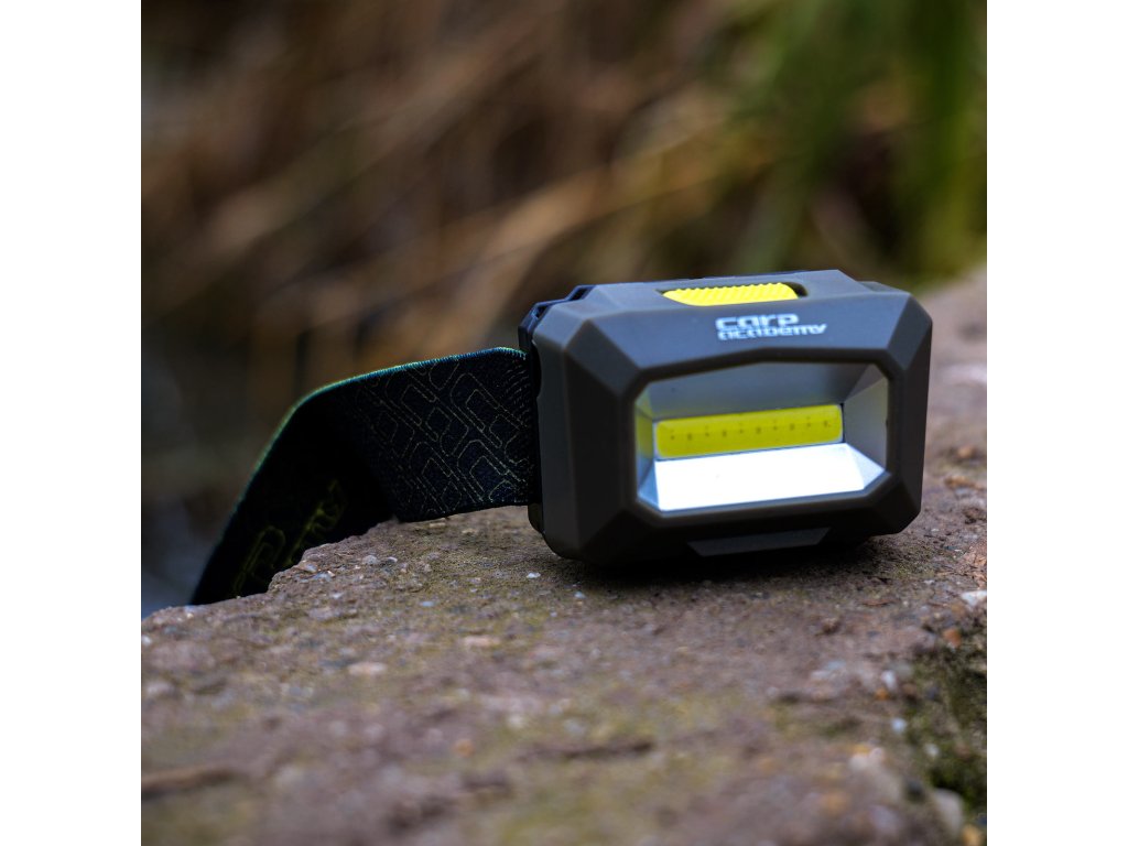 A CARP ACADEMY fejlámpa egy kiváló minőségű LED sorral rendelkező készülék, melynek felső kapcsolójával két féle fényerősség állítható be, valamint a villogó fény. Továbbá a kapcsoló 3 mp lenyomásával bekapcsolható a vörös fény. A beépített akkumulátor a hátsó tartóban kapott helyet, külön bemenettel a microUSB-s töltőnek.