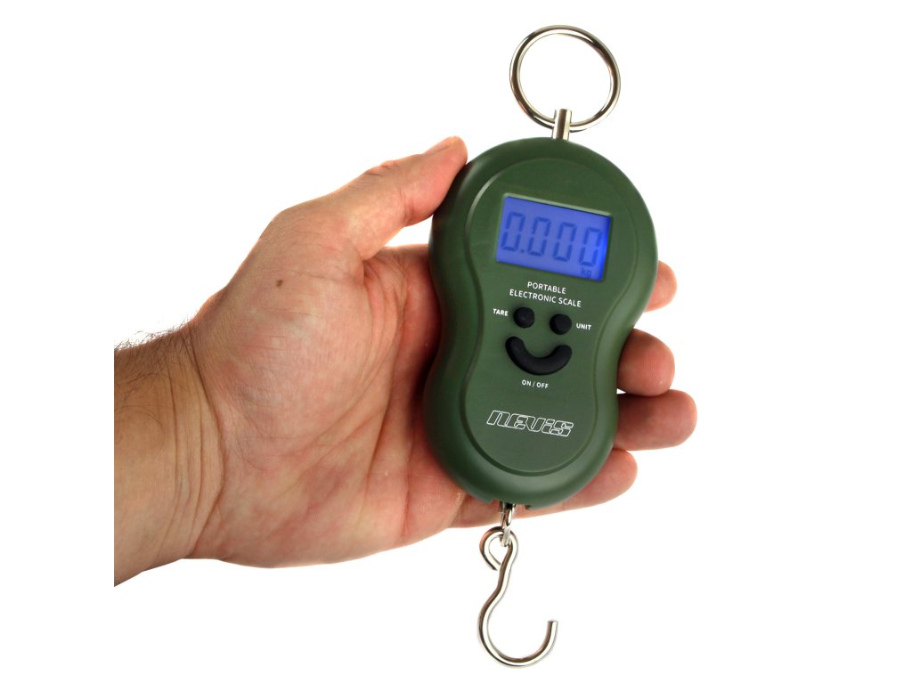Egyszerű működtetésű, gyorsan használható elektromos mérleg, nagyöblű akasztófüllel.