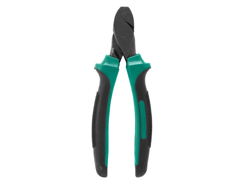 A fogó két különböző méretű krimpelő hüvely szorítására alkalmas, amely hat helyen egyszerre szorítja a fémet a zsinórra.