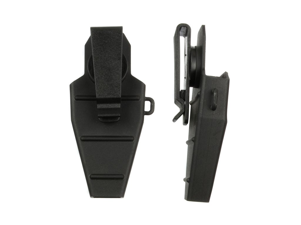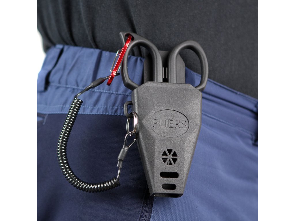 Egy mozdulattal övre szerelhető műanyag fogótartó. Biztonsági zsinórral.