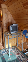 Tv, hűtő, edények, kávéfőző, kenyérpirító, mikró, tűzhely, bogrács. Kinti étkező, szalonnasütő, nyársak, bográcsozó, mosógép, porszívó.