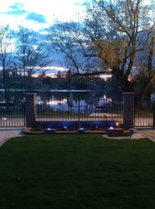 A háztól a stégeket egy egy sávos földút választja el, a ház körbekerített.