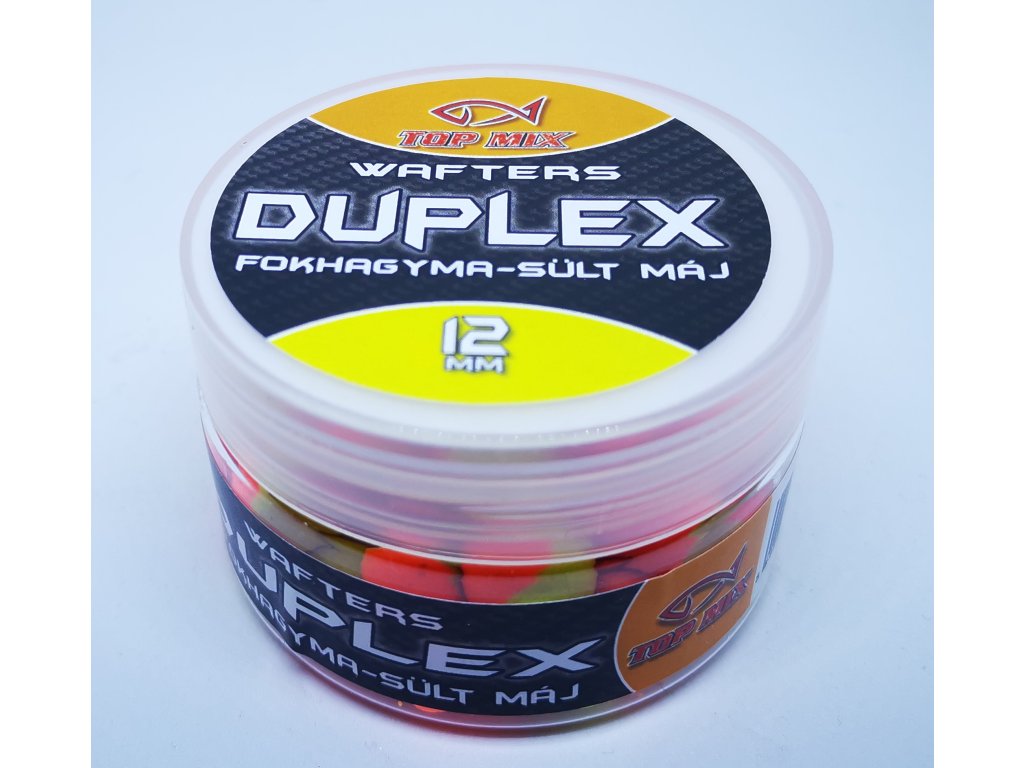 A Top Mix Duplex wafters termékcsalád tagjai azoknak a feeder horgászoknak készültek, akik szeretik az attraktív oldódó csalikat. Kikönnyített pelletek, de épp csak annyira, hogy fine tüske mellett #14 horgokkal is használhatók legyenek a legkisebb, 8-as méretek. 8mm, 10mm és 12mm méretekben kapható minden íz. Oldódási képessége intenzív, "nyitott csali", hogy az aroma mellett beltartalmi értéke is csalogassa az oda tévedő halakat. Dupla színösszeállítás mellett ugyanazzal a csalival különböző fényviszonyok mellett is horgászhatunk, egyszerűen a másik oldalról tűzzük fel a csalinkat, máris más tónusú, de ugyanolyan színvilágú csalink lesz a horog mellett.