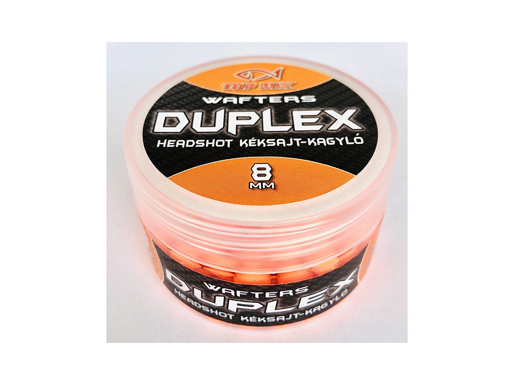 A Top Mix Duplex wafters termékcsalád tagjai azoknak a feeder horgászoknak készültek, akik szeretik az attraktív oldódó csalikat. Kikönnyített pelletek, de épp csak annyira, hogy fine tüske mellett #14 horgokkal is használhatók legyenek a legkisebb, 8-as méretek. 8mm, 10mm és 12mm méretekben kapható minden íz. Oldódási képessége intenzív, "nyitott csali", hogy az aroma mellett beltartalmi értéke is csalogassa az oda tévedő halakat. Dupla színösszeállítás mellett ugyanazzal a csalival különböző fényviszonyok mellett is horgászhatunk, egyszerűen a másik oldalról tűzzük fel a csalinkat, máris más tónusú, de ugyanolyan színvilágú csalink lesz a horog mellett.